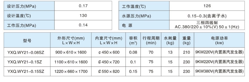 YXQ.WY21(22)-口SZ型臥式圓形壓力蒸汽滅菌器是一種采用飽和壓力蒸汽為介質(zhì)的溫度、時(shí)間顯示可調(diào)的自動(dòng)控制滅菌設(shè)備。該設(shè)備自帶蒸汽發(fā)生器,滅菌前夾層預(yù)熱、內(nèi)層置換冷空氣,滅菌后夾層烘干使物品干燥。采用了溫度、時(shí)間數(shù)碼顯示、按鍵設(shè)置功能